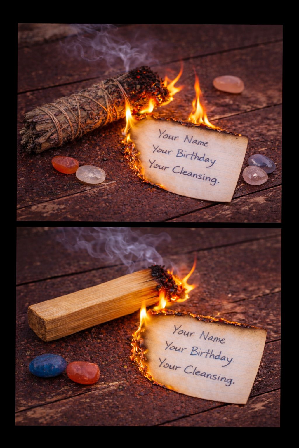 During each cleansing, your name is written on a card and burned as part of the ritual. The way the card and materials burn provides intuitive insight into how the energy is shifting and what is being cleared for you.